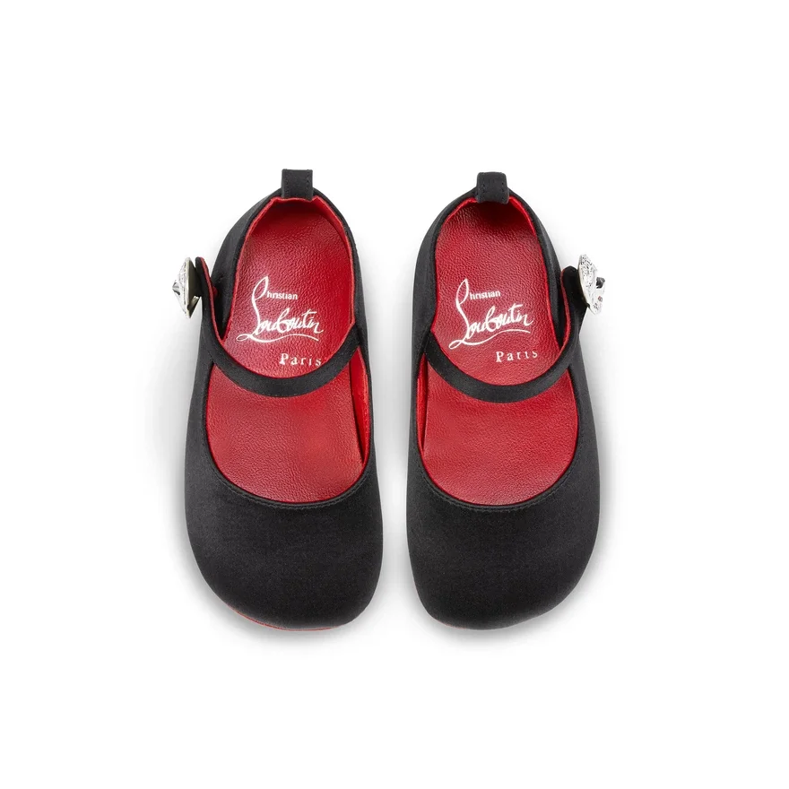 A Ballerina Pump Designed for Little Ones, the Baby Love Chick Strass is Both Playful and Elegant. Made Entirely from Black Crepe Satin Adorned with Hand-Placed Strass, This Christian Louboutin Shoe Dresses the Foot with a Slight Rounded Vamp.