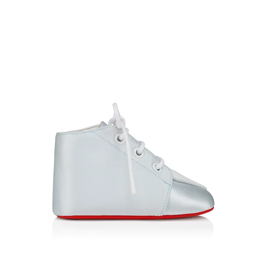 Maison Christian Louboutin’s Baby Love is a Playful and Elegant Basket, Designed for Little Feet. It’s Crafted from Pastel Blue Crepe Satin and Trimmed with a Delicate Lace That Enhances the Foot.