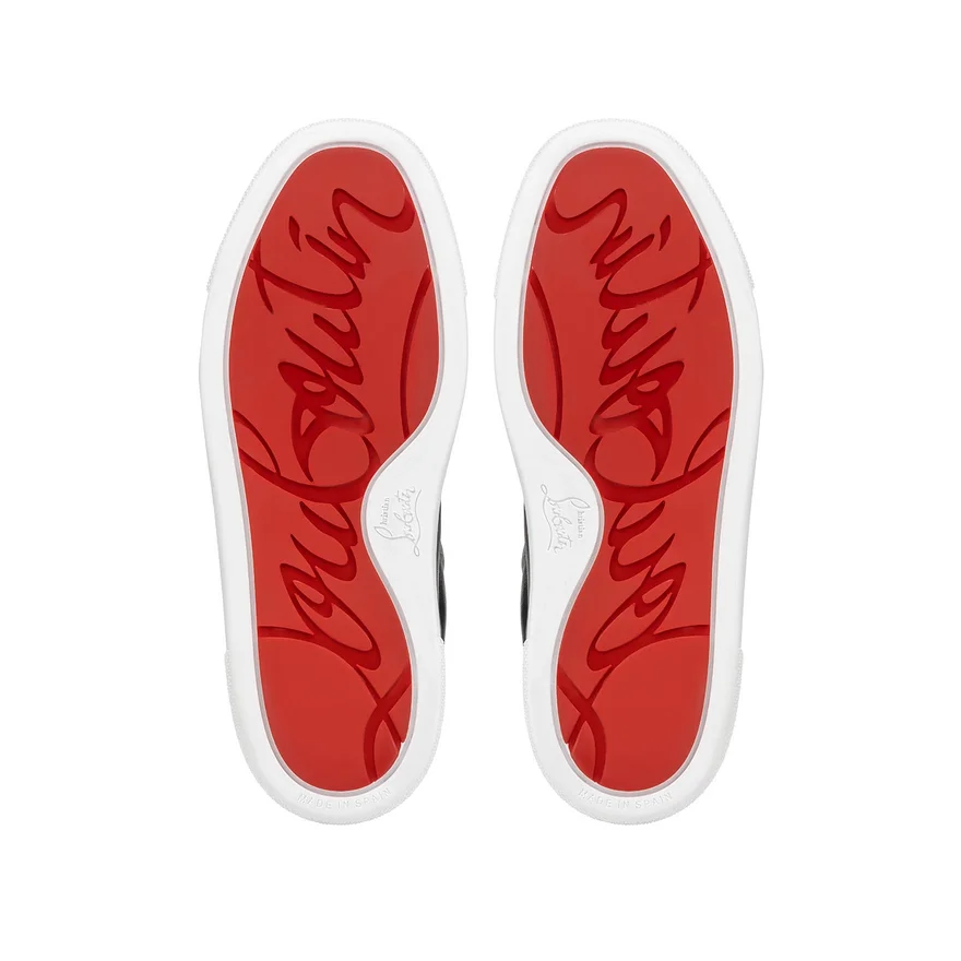 The Eye-Catching, Elegant Low-Top Funnyto Sneaker is Crafted from Navy Blue Calf Leather. This Maison Christian Louboutin Sneaker Has a Tonal Patent Calf Leather Heel Counter That Sports a Signature Logo. It Has a Lace-Up That Only Needs Doing up the First Time It is Worn as It Can Then Be Fastened by a Velcro Strap.