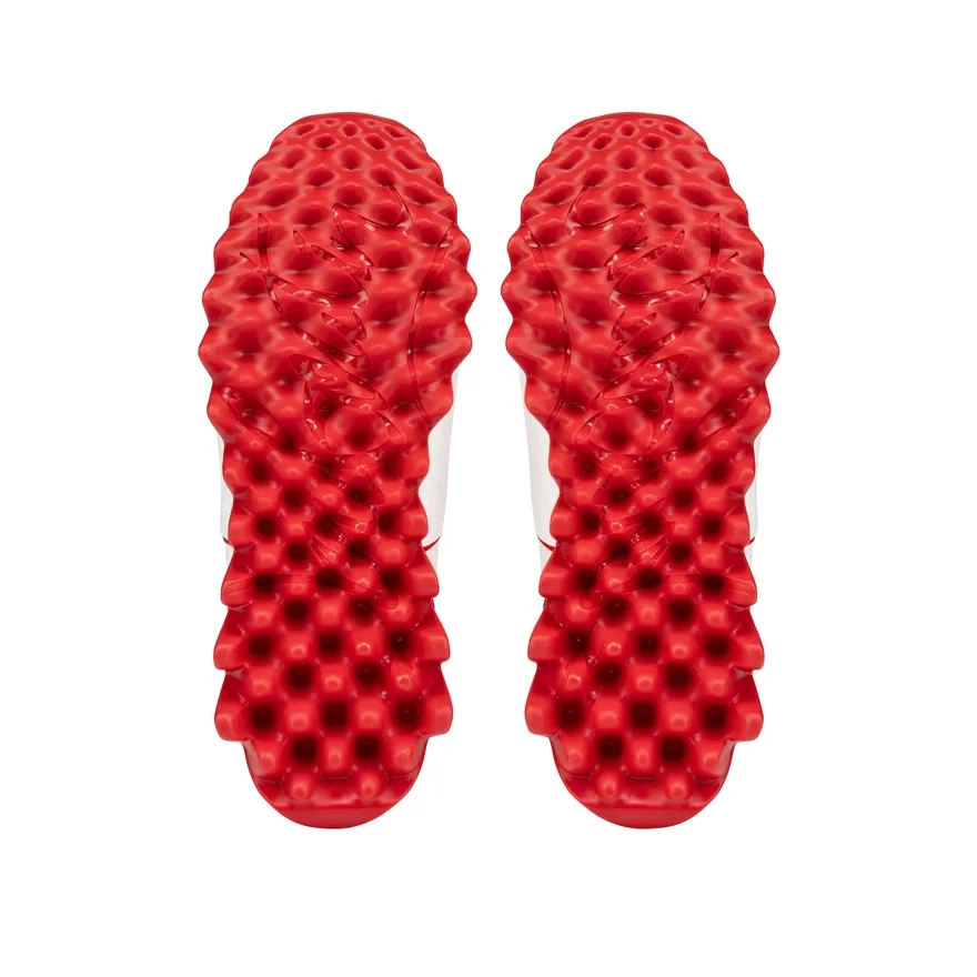 The Mini Sharkyloub Sneaker Reinterprets the Codes of Maison Louboutin’s Iconic Loubishark with Its Blend of Textures. Crafted in White and Loubi Red, This Shoe Blends Calf Leather and Neoprene. It Features the Egyptian-Inspired Cl Monogram.