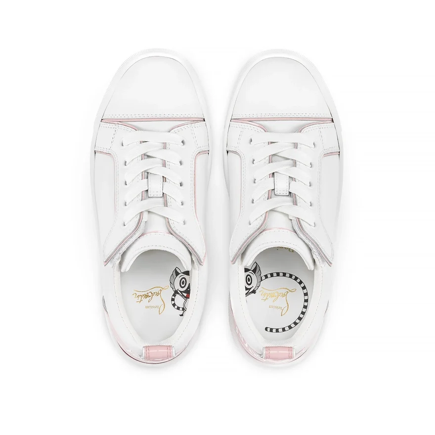 The Eye-Catching, Elegant Low-Top Funnyto Sneaker is Crafted from White Calf Leather. This Maison Christian Louboutin Sneaker Has a Rosy Pink Patent Calf Leather Heel Counter That Sports a Signature Logo. It Has a Lace-Up That Only Needs Doing up the First Time It’s Worn as It Can Then Be Fastened by a Velcro Strap.- Non-Slip Louboutin Signature Rubber Sole- Lasered Louboutin Signature- Laces + Velcro Strap- Laces to Tie the First Time They’re Worn for Excellent Fit- Velcro Tab So It Can Be Slipped on and off Easily- Printed Lemur on the Insole to Help Kids Tell Left from Right- Comfy Design, Perfect for Everyday Use