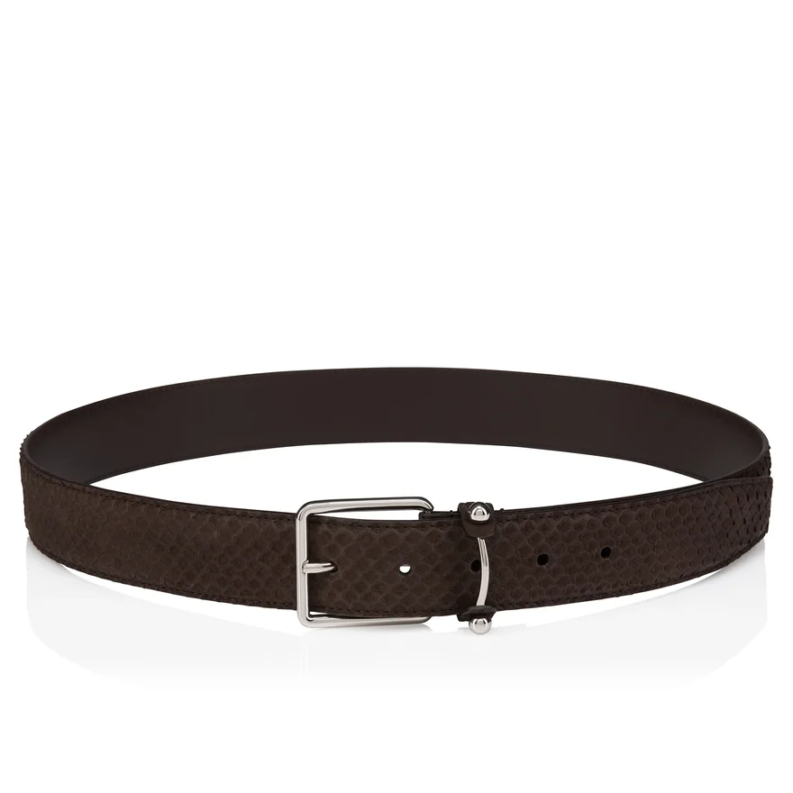 The Chambeliss Belt is Defined by Its Buckle That Features a Silver Metal Collar Pin. This Elegant Maison Christian Louboutin Accessory is Entirely Crafted from Cafe Brown Python Nubuck Leather That Delivers an Exotic Statement with Subtle Sophistication.