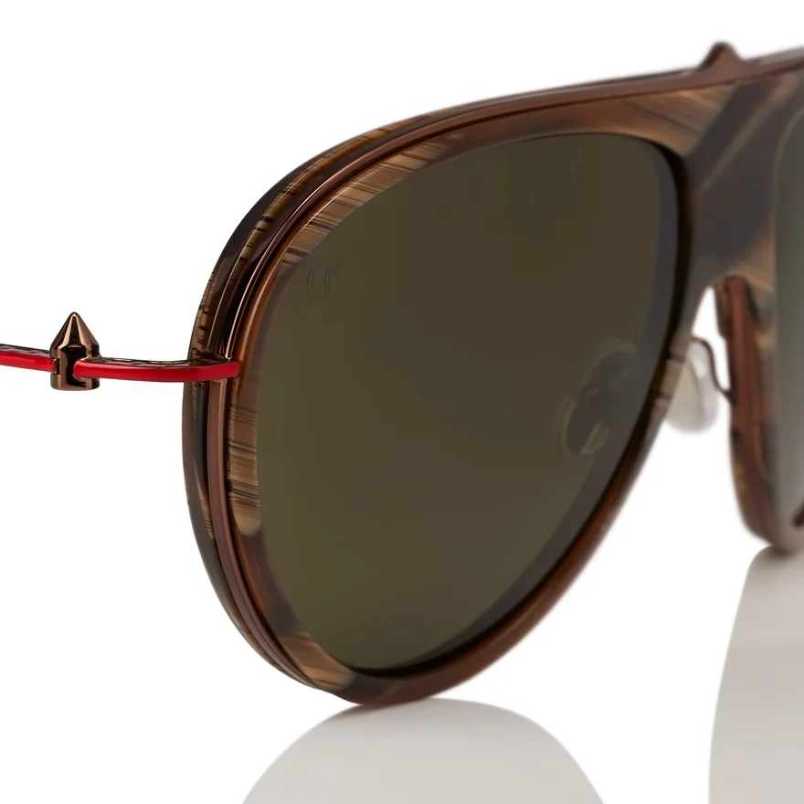 Greggo Lb0004 is One of the Most Iconic Styles of This Sunglasses Collection. It Features a Pilot Style with Metal Detail on the Frontal That Enrich the Acetate. A Red Touch is Given by Enamel on Temple Side Profile. Crafted Metal with Palmette Pattern Embellished the Temples Structure. This Model is Made in a Brown Horn Color and Vintage Green Lenses. High-Performance Zeiss Lenses Offering Exceptional Quality Comfort and Durability for Christian Louboutin Collection.