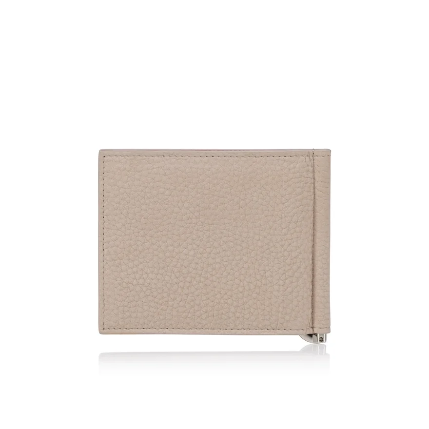 The Mooncrest Money Clip Wallet Has a Timeless Appeal. Crafted in Beige Grained Reversed Calf Leather Finished with a Subtle Grained Relief, This Useful Accessory is Adorned by Maison Christian Louboutin’s Emblematic Cl Logo in a Silver Color.