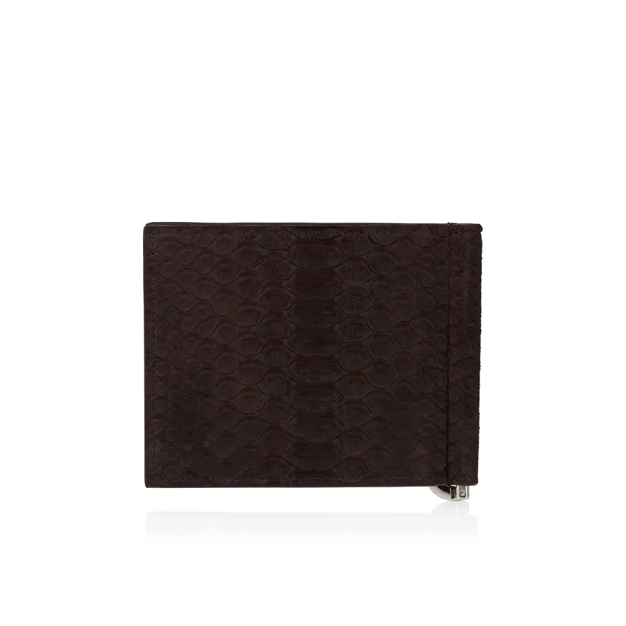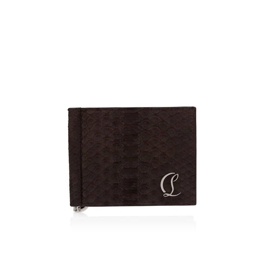 The Mooncrest Money Clip Wallet Has a Timeless Appeal. Crafted in Cafa Brown Python Nubuck Leather, This Useful Accessory Features Maison Christian Louboutin’s Emblematic Cl Logo in a Silver Colour Fixed on the Leather.