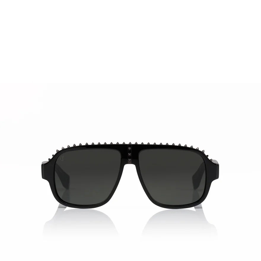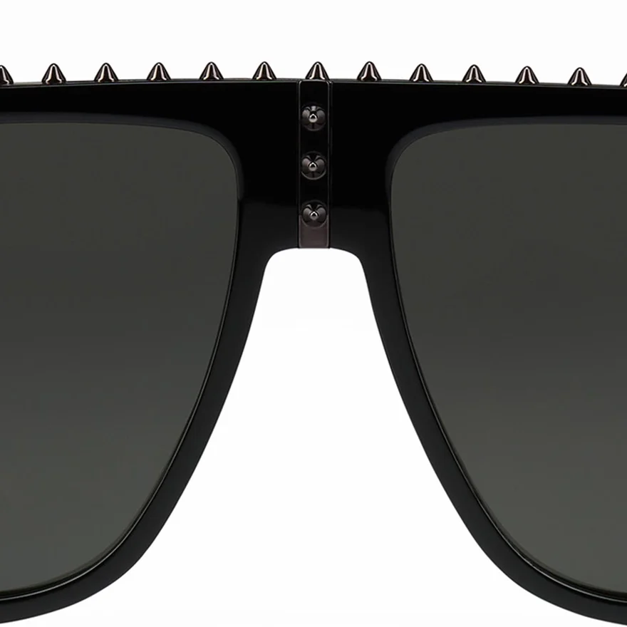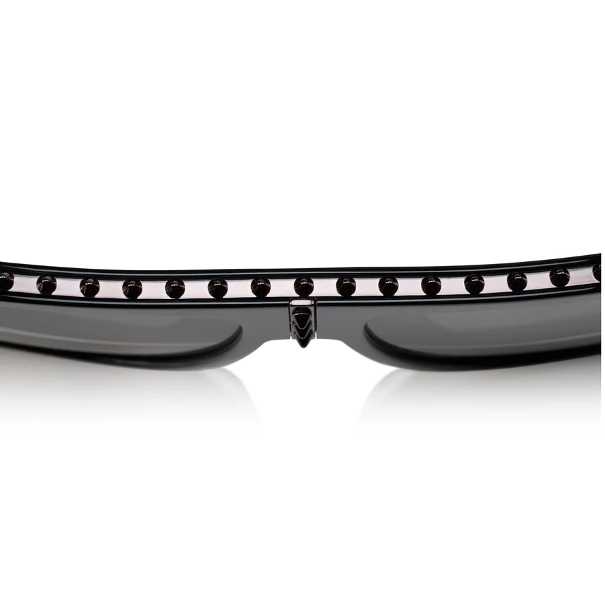 Roller Lb0005 is One of the Most Iconic Styles of This Sunglasses Collection. It Features a Navigator Acetate Style with Spikes on All the Top Part of the Frontal Profile, on the Nose and Temples. Dedicated Spikes Hinge as Design Detail. This Model is Made in a Gunmetal Color with Smoke Lenses. High-Performance Zeiss Lenses Offering Exceptional Quality Comfort and Durability for Christian Louboutin Collection.