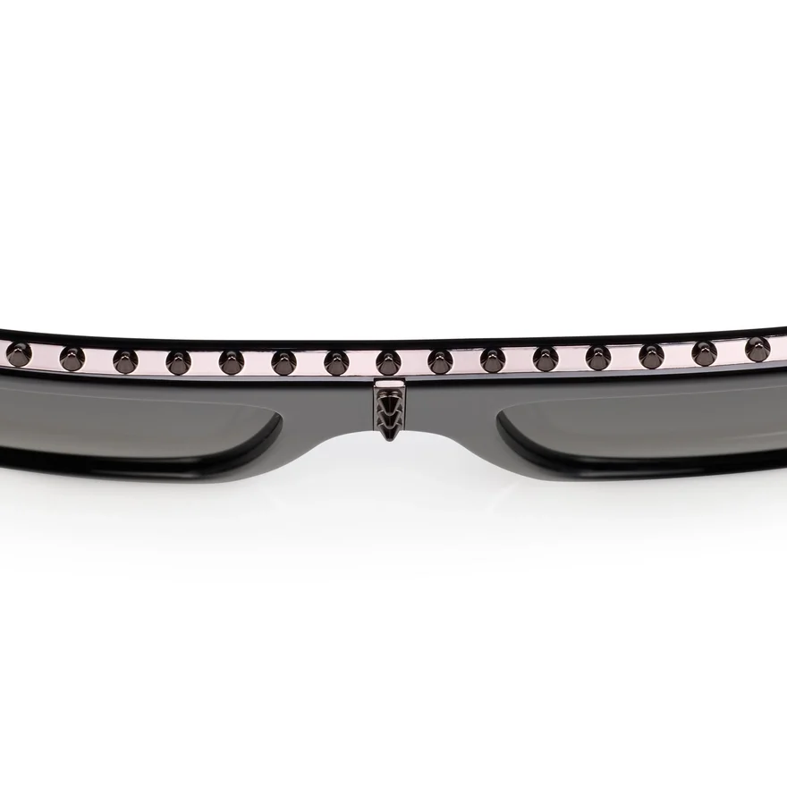 The Roller Lb0023 Sunglasses from Eyewear Collection 2 Are More than Just Accessories: They Pay Tribute to the Brand’s Rich Heritage and Celebrate Iconic Artistry. Designed for the Self-Confident Individual Who Wants to Showcase a Fashion-Forward Taste.This Rectangular Shiny Black Acetate Style Features Gunmetal Spikes Along the Entire Top of the Frontal Profile and on the Nose, Combined with High-Performance Zeiss Smoke Lenses That Offer Exceptional Quality, Comfort and Durability for the Christian Louboutin Collection. The Dedicated Spikes Hinge, as a Design Detail, is Clearly Linked to the Cl Men’s Collection.Dimensions:- Lens Width: 56Mm- Bridge: 19Mm- Temple Length: 140Mmbelonging to the Men’s Collection, This Model Suits Both Men and Women.These Frames Are Suitable to Add Prescription Lenses.Made in Italy.