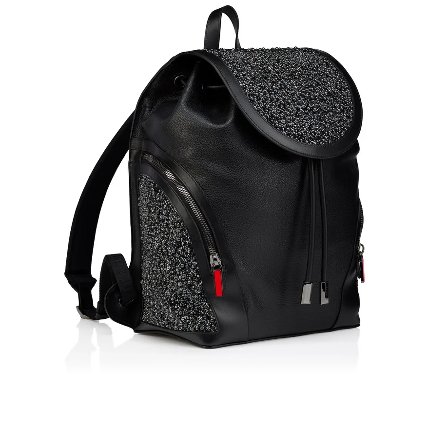 The Funky Backpack is an Iconic Maison Christian Louboutin Model Thanks to Its Shape and Lasered Signature on the Bottom. This Exceptionnal Bag is Made from Black Suede on the Top and Side of the Bag, the Rest is Crafted from Black Grained Calf Leather and is Adorned with Strass and Handplaced Pearls, Offering Emblematic Maison Christian Louboutin Sophistication.