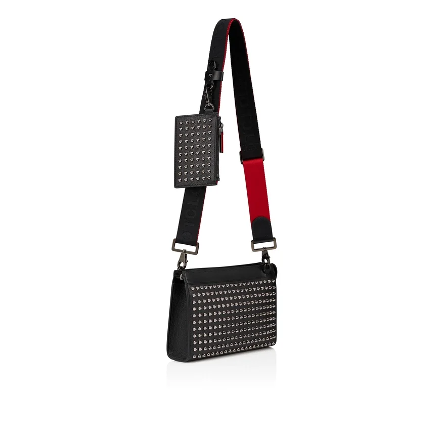 The Urban Funky Crossbody Bag is Adorned with Signature Maison Christian Louboutin Metallic Spikes. This Lightweight and Supple Bag Has Sporty Lines and is Crafted from Scratchproof Black Grained Calf Leather.