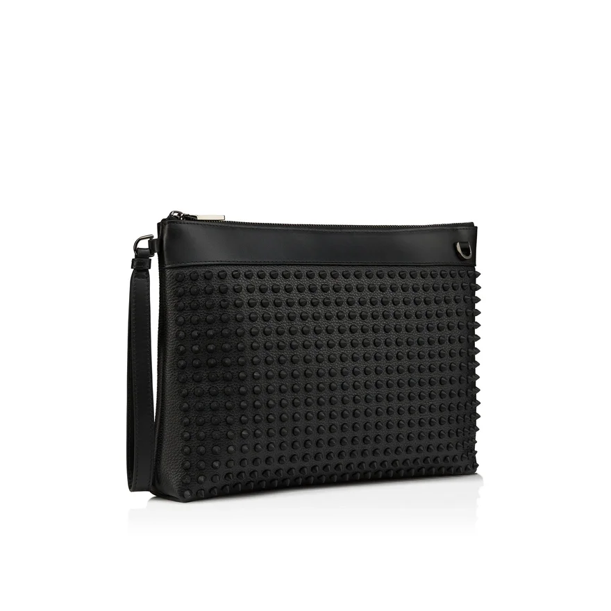 The Urban Funky Clutch is Adorned with Signature Maison Christian Louboutin Tone-On-Tone Spikes. It Has Sporty Lines and is Crafted from Scratchproof Black Grained Calf Leather.
