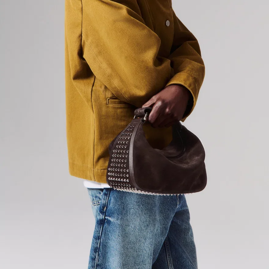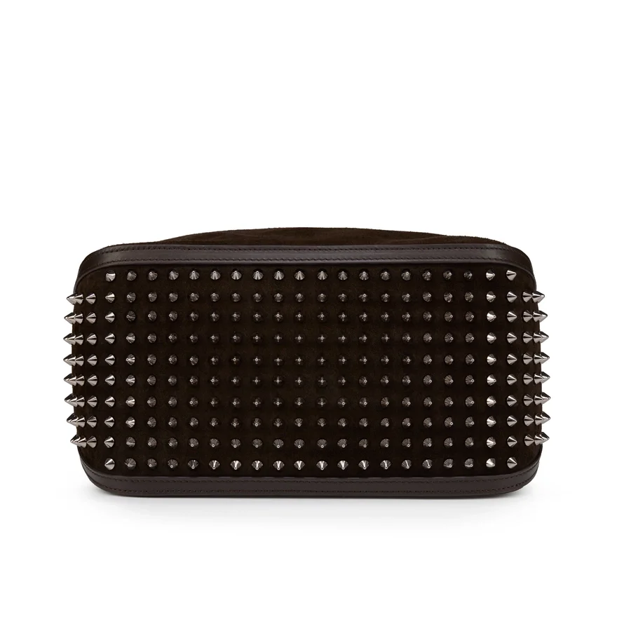 With Its Contemporary Look, the Funky Dopp Pouch Can Be Used as a Bag for Any Occasion. Embellished with Striking Maison Christian Louboutin Gun Metal Grey Spikes on the Sides and the Bottom and Featuring a Side Handle with a Velcro Fastener for an Easy Carry and Closing of the Bag. This Model is Crafted in Cafe Brown Crosta Calf Leather.