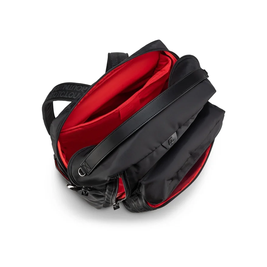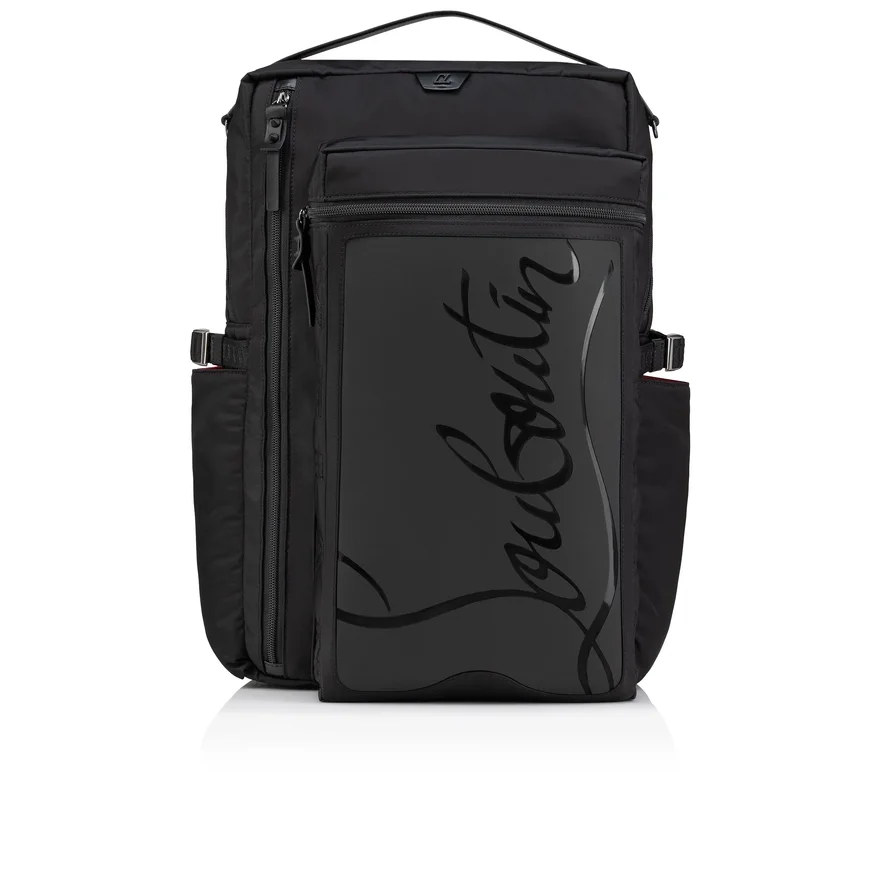 With Its Sporty Lines, the Loubideal Backpack Showcases Maison Christian Louboutin’s Technical Prowess. It is Crafted in Black Rubber and Nylon and Bears Its Creator’s Signature on the Front.