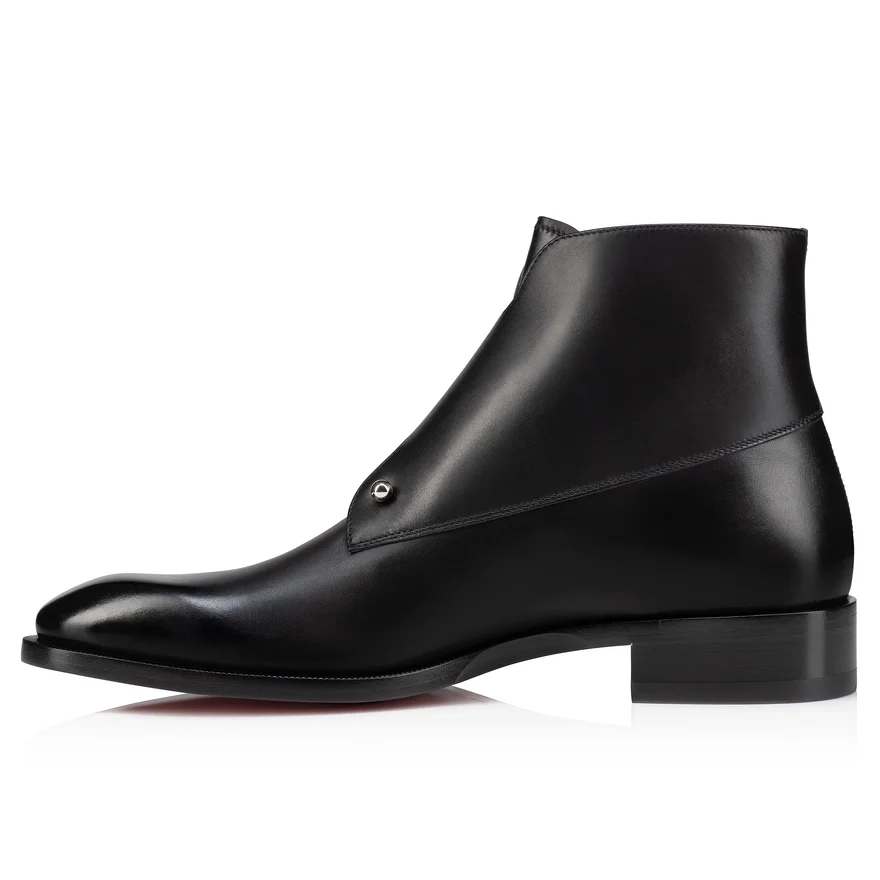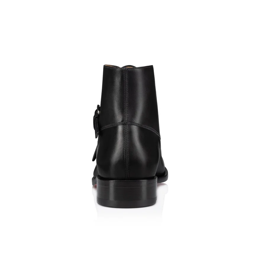 The Chambelimonk Boot Has a Bold Attitude and Rock Appeal That Works with Both Elegant, Tapered Trousers and Jeans. This Striking Maison Christian Louboutin Model is Crafted in Smooth Black Calf Leather. The Vamp is Pierced with a Signature Metal Collar Pin, and Two Metal Buckles Fasten on the Side. A Thick Sole and Large Notched Welt Offer a Rugged Finish.