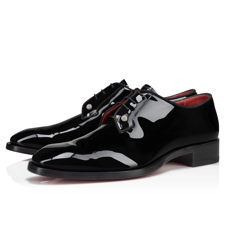 The Elegant Chambeliss Night Strass Features Sleek Lines. This Maison Christian Louboutin Derby is Crafted in Black Patent Calf Leather. It Features Tone-On-Tone Grosgrain Piping, a Tab at the Back, a Removable Silver Collar Pin and a Cl Monogram on the Heel.