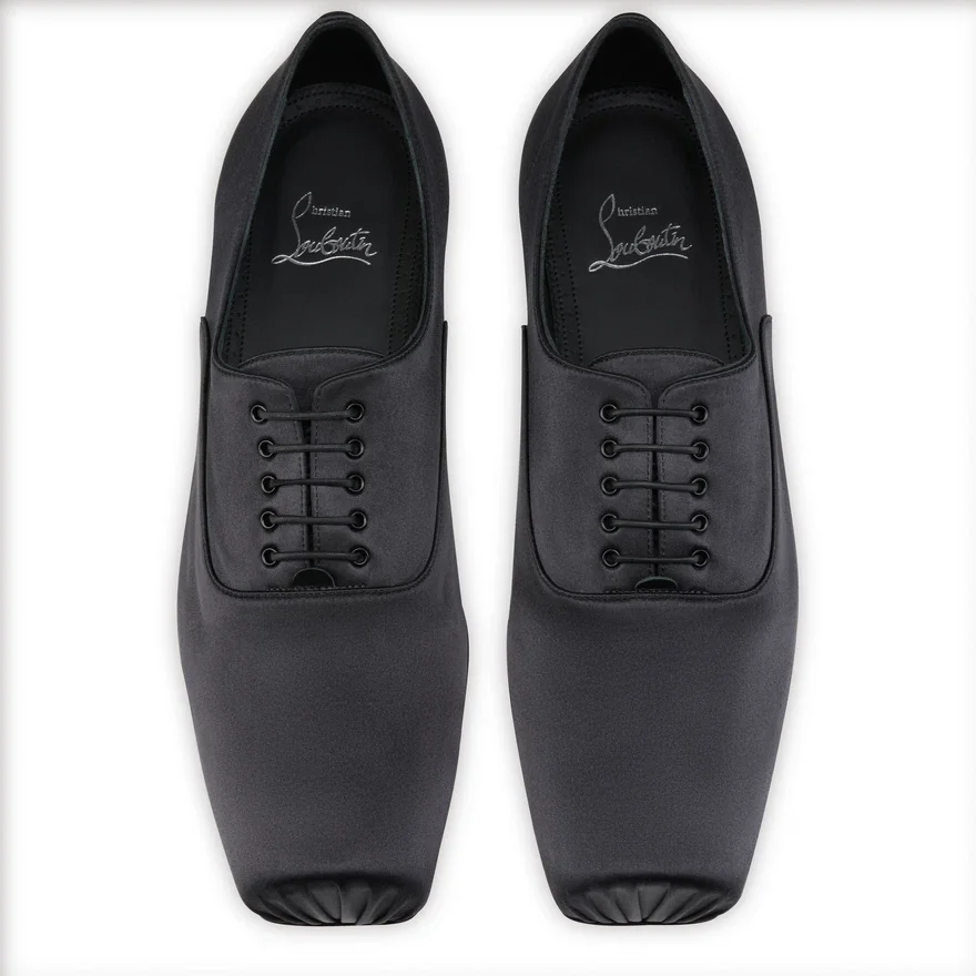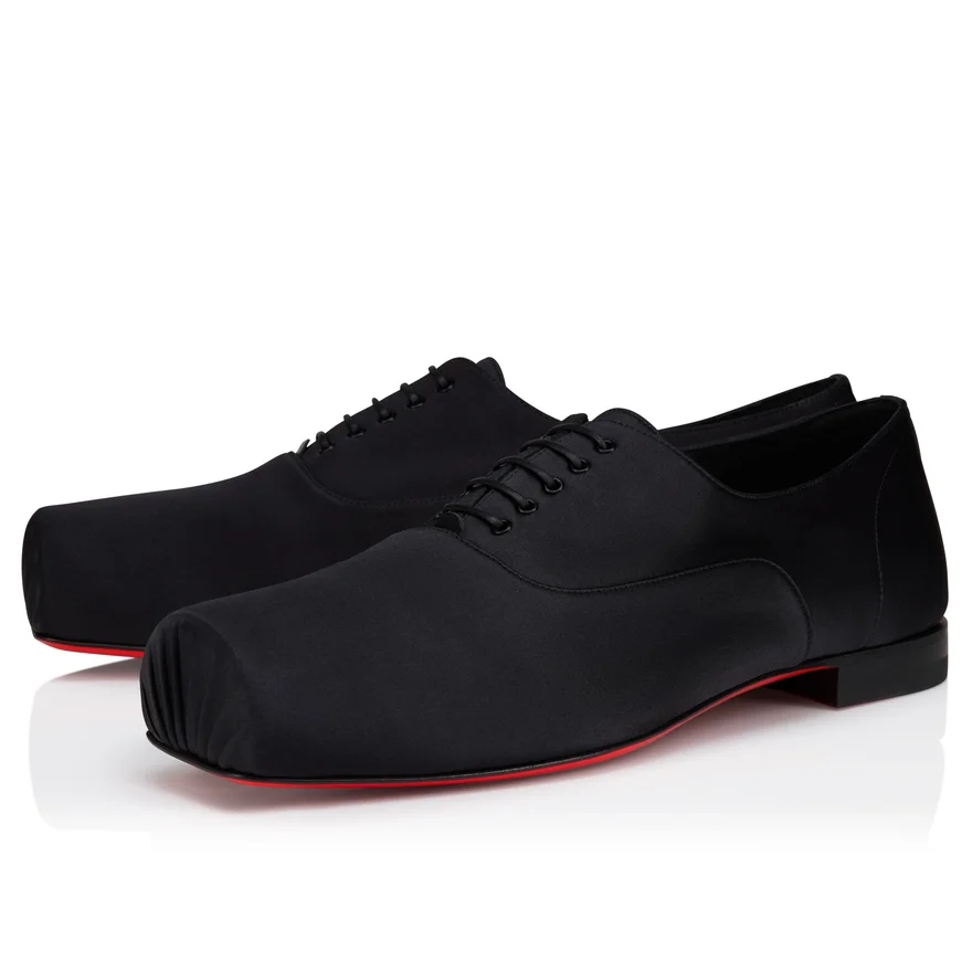 The Maison Christian Louboutin Ruben Lace-Up Features a Distinctive Crumpled Square Toe That is Reminiscent of the Elegance of the World of Ballet, While a Sleek Profile is a Nod to the Grace of a Dancer. Crafted in Black Crepe Satin with a Lightweight Loubi Red Sole, This Model is a True Reflection of Self-Expression.