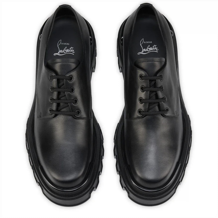 The Trott Dune is a Mainstay Derby Shoe That Sits on a Signature Maison Christian Louboutin Lug Sole. Crafted in Black Waxed Calf Leather That Develops an Aged Patina over Time, This Model Features a Versatile Heel Tab. The Distinctive Loubi Red Sole Confirms This Boot’s Style.