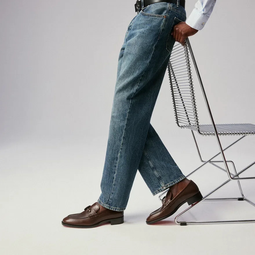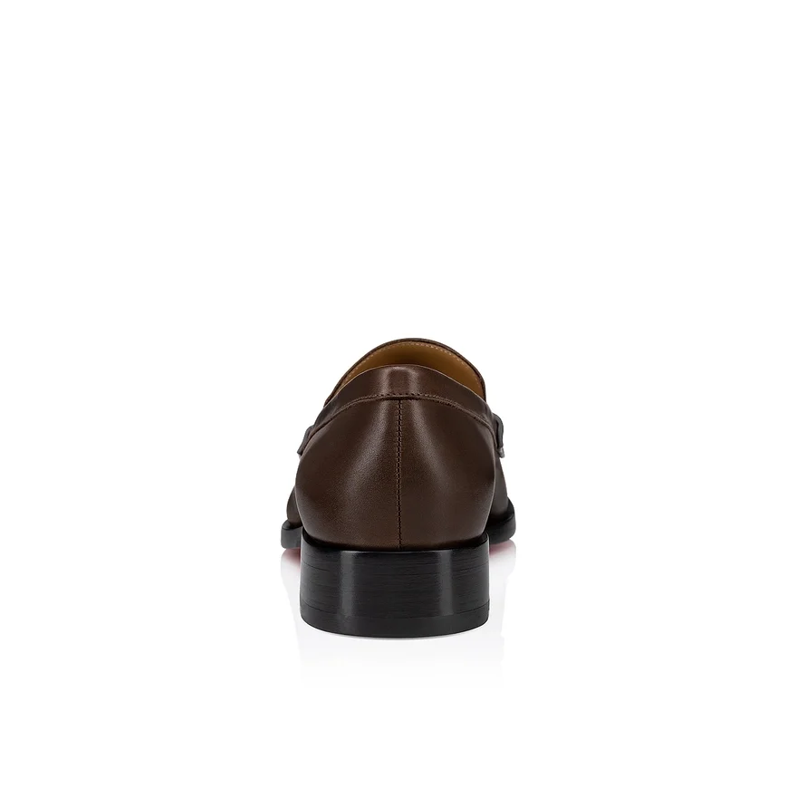 The Chambelimoc Loafer Enchants with a Sleek Design. This Maison Christian Louboutin is Crafted in Cosme Brown Calf Leather and Has Tonal Raw-Edge Trims. It is an Elegant Shoe Featuring Side Straps Joined by an Audacious Silver Collar Pin.