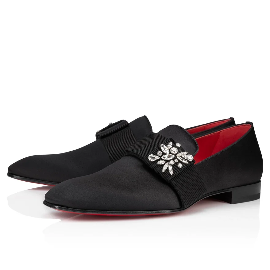 Embellished with a Sprinkling of Sparkling Gemstones, the Dandelion Red Carpet Men’s Loafer Echoes the Panache of the Film Industry. An Elegant Silhouette Finished with an Almond Toe Creates a Sophisticated Shoe That Will Enhance Any Outfit with a Sense of Timeless Elegance. Crafted from Black Crepe Satin for an Opulent Feel, the Loubi-Red Sole Reflects the Essence of Maison Christian Louboutin.