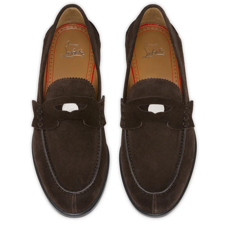 The Timeless Penny Loafer is Inspired by Traditional Penny Loafers. The Hand-Sewn Strap Across the Serrated-Edge Tongue Holds a Coin Stamped with the Maison Christian Louboutin Logo. It Has a Rounded Toe and is Crafted in Cafa Brown Nubuck Leather. The Meticulous Finishing Details Make This Elegant Model an Excellent Staple for Urban Wardrobes.