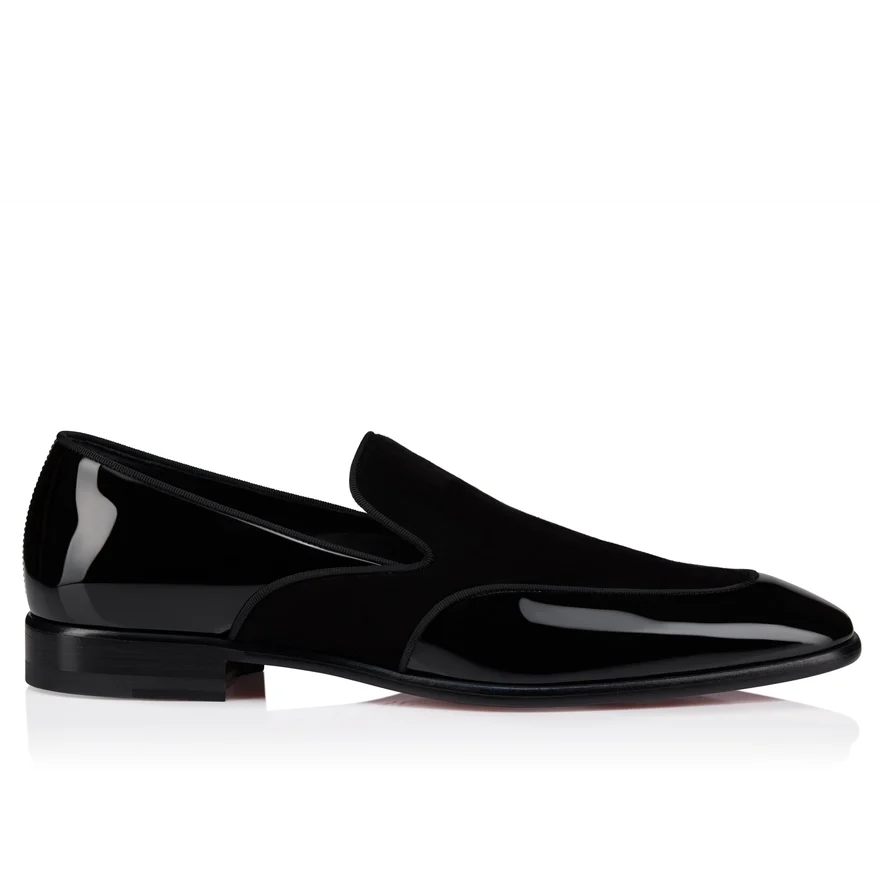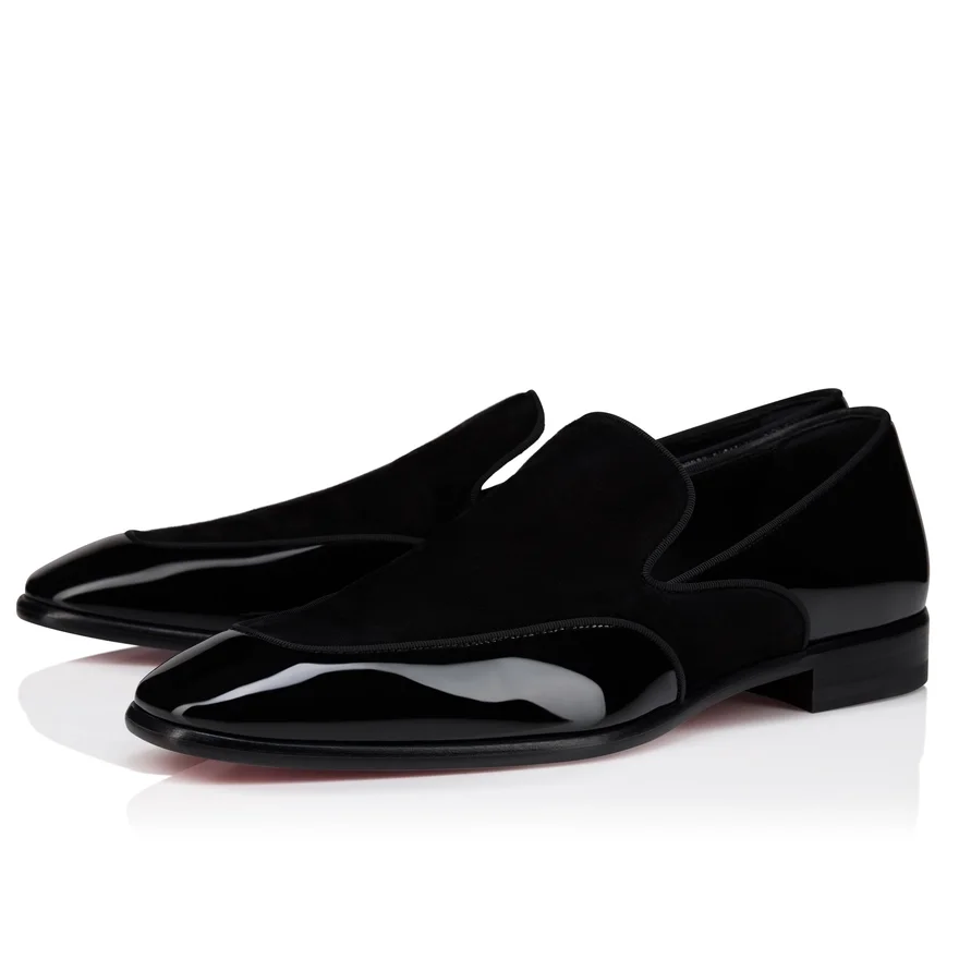 The Yaki Loafer Showcases Maison Christian Louboutin’s Creativity. Crafted from Patent Leather and Veau Velours, the Fusion of Textures Creates a Sophisticated Finish. This Model is Shaped with a Narrow Silhouette and Features the Iconic Loubi Red Sole.