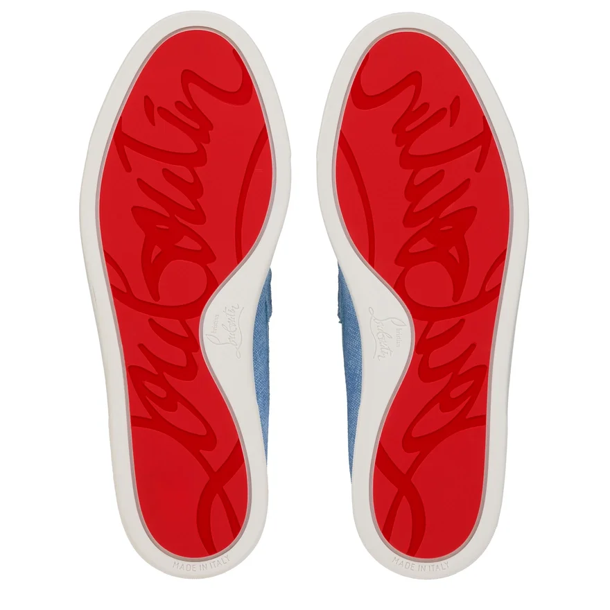 The Chambeliboat Boat Shoe is Characterized by Its Sleek Silhouette. It Has a Refined Design with a Tone-On-Tone Lining, a White Rubber Sole and is Crafted Entirely from Ceruleo Blue Reversed Calf Leather with a Canvas Pattern. It is Adorned with a Metallic Collar Pin on the Vamp, Showcasing Maison Christian Louboutin’s Creative Flair. This Model Has a More Supple Construction Thanks to the Unlined Leather.
