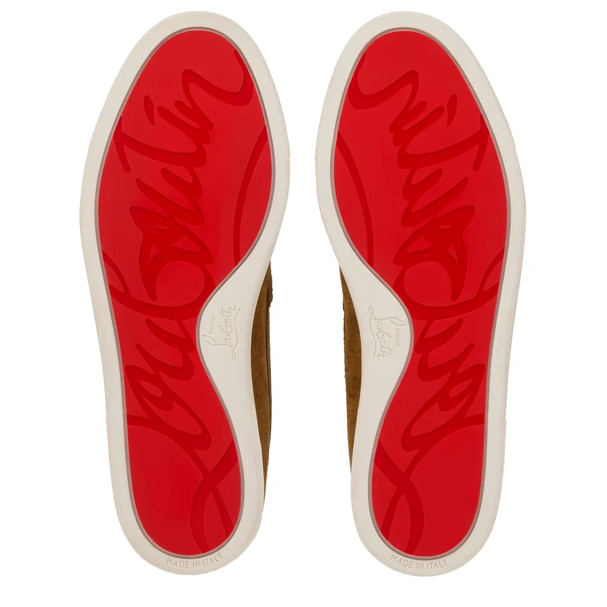 The Chambeliboat Boat Shoe Has a Sleek Silhouette. An Elegant Design with a Supple Construction Crafted from Rhea Brown Reversed Nubuck Leather. This Shoe’s Tongue is Trimmed with a Metal Collar Pin, Showcasing Maison Christian Louboutin’s Creative Flair. A Light, Summery and Urban Model Set on a White Rubber Sole.