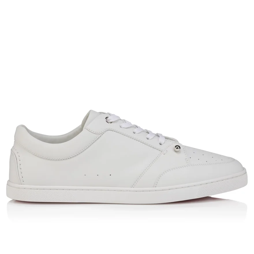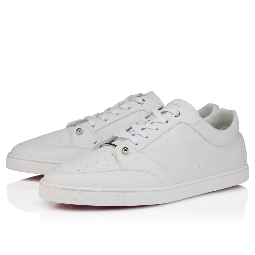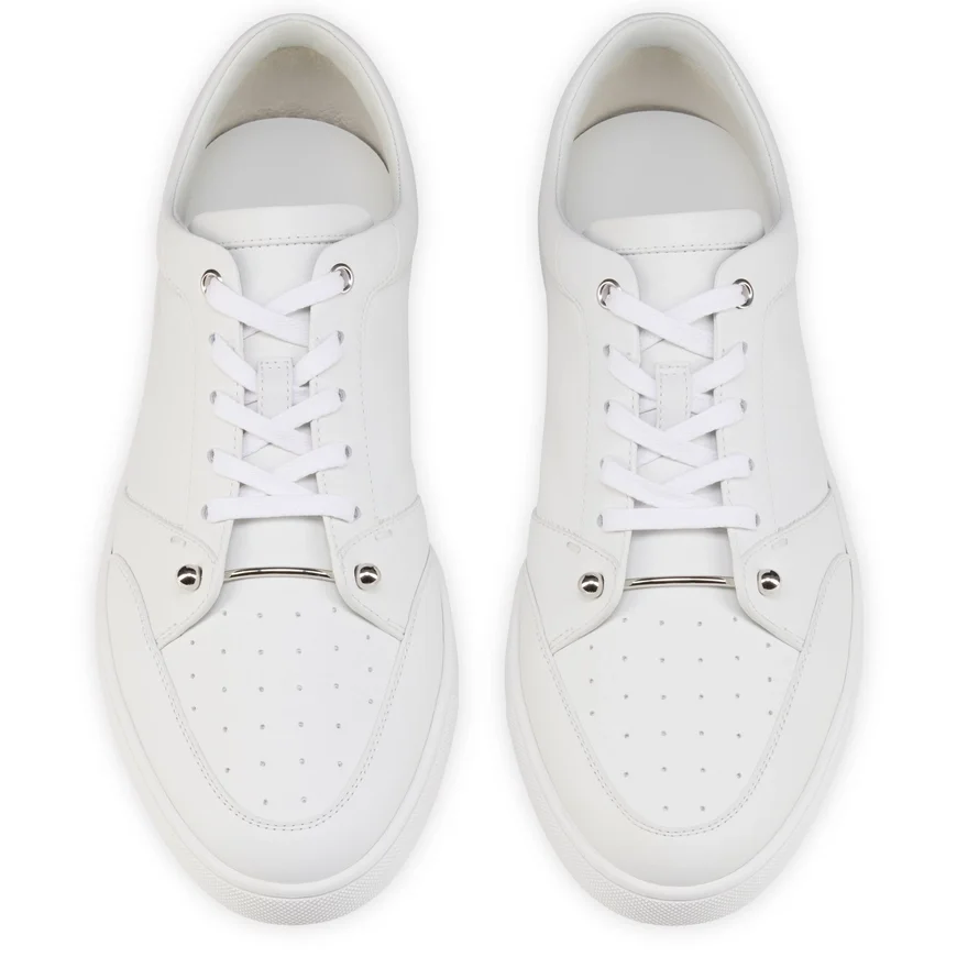 A Sneaker with a Slim Urban Silhouette, the Chambelisneak by Maison Christian Louboutin is Crafted Entirely from White Unlined Calf Leather. Enhanced with Finishing Details, It is Characterized by Its Transverse Metallic Collar Pin for Audacious Style. Offering a More Supple Construction, This Model Features a White Rubber Sole.