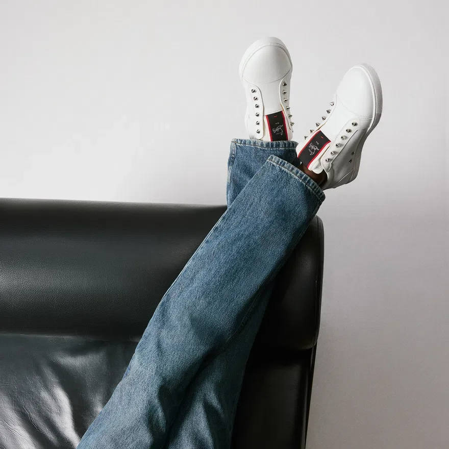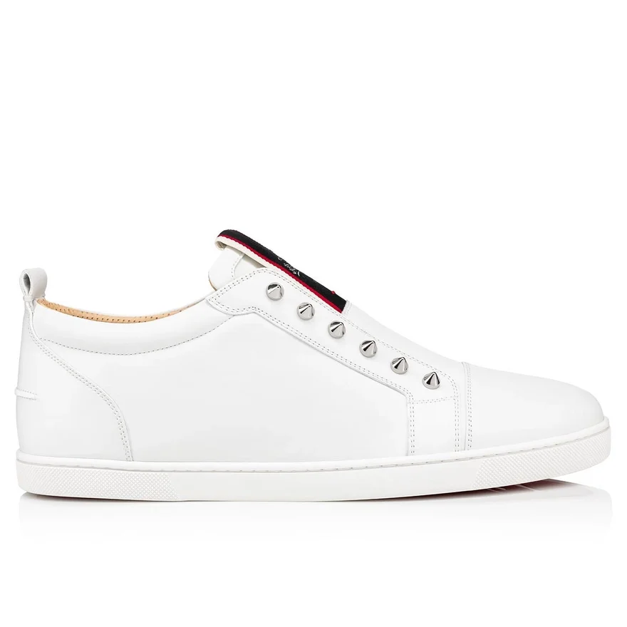 The F.A.V. Fique a Vontade Reinterprets the Classic 1980S Tennis Shoe in a Contemporary Key. This Season the Slip-On Sneaker Exudes Laid-Back Elegance in Luxurious White Calf Leather. For Effortless Yet Edgy Styling, the Slip-On Construction is Complemented by a Signature Grosgrain Ribbon Detail and Six Silver-Tone Spikes.