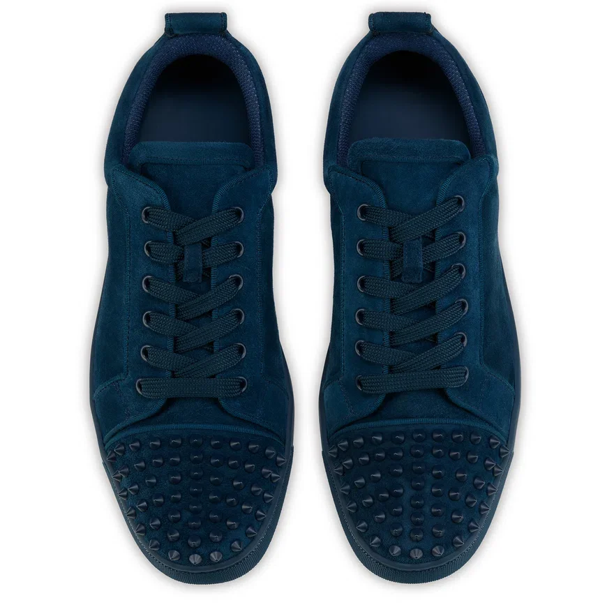 The Louis Junior Spikes for Men is a Low-Top Sneaker with a Timeless Silhouette, Evoking the Tennis Shoes of the 1980S While Lending a Striking Contemporary Twist. This Model is Crafted in Supple Veau Velours in Last Night Blue. The Toe is Adorned with a Myriad of Maison Christian Louboutin Signature Tonal Spikes.
