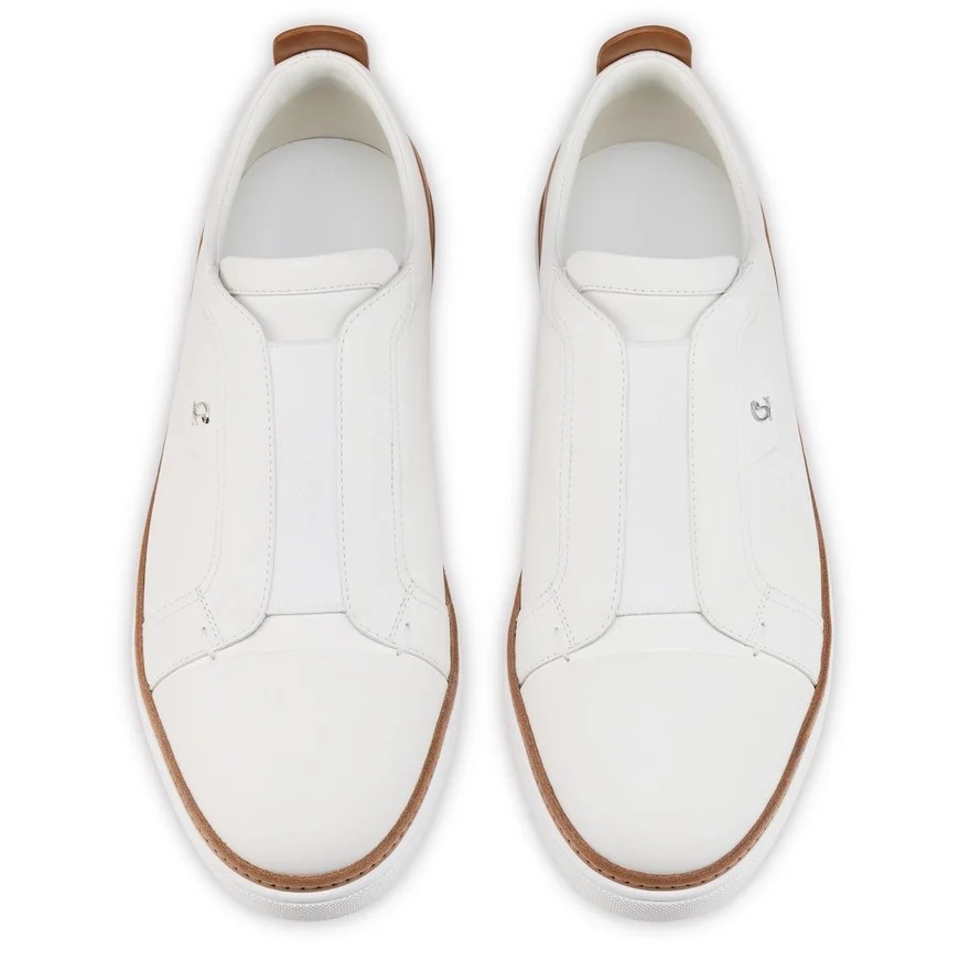 The Marcontonio is a Sophisticated Sneaker That Blends Contemporary Style with Signature Maison Christian Louboutin Design. Crafted in White and Cuoio Brown Calf Leather, and Featuring a Supple Construction, the Stitching Encircling the Rubber Sole Contrasts with the Elegant Upper. An Iconic Scar Stitch and Hand-Stitched Eyelets Complete the Detail of This Slip-On Sneaker That Portrays a Sense of Casual Elegance. The Signature Loubi Red Sole is the Finishing Touch.