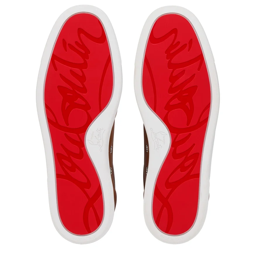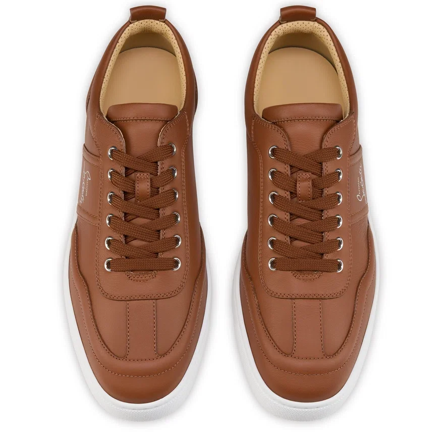 The Retero is an Elegant Low-Top Sneaker Set on a White Rubber Sole. With Its Sporty Lines, It is Made Entirely from Cuoio Brown Calf Leather. This Model Features a Heel Tab and the Emblematic Maison Christian Louboutin Signature on the Side. It Also Has a More Flexible Construction.