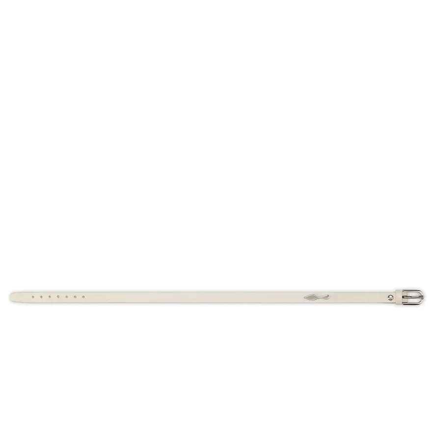 A Bracelet That Wraps Twice Around the Wrist, the Bettina Model is Distinguished by Its Silver Decoration Evoking the Silhouette of the Iconic Sole. This Sleek Maison Christian Louboutin Accessory is Entirely Crafted from Smooth Suzuran White Paris Calf Leather. The Paris Calf Leather Has a Smooth Surface and a Slightly Shiny Finish for a Sleek Look.