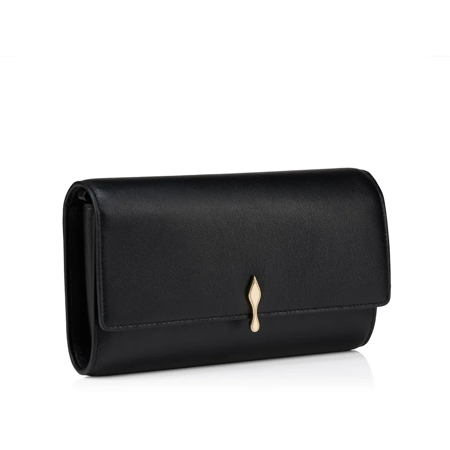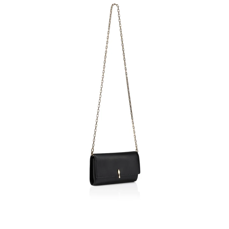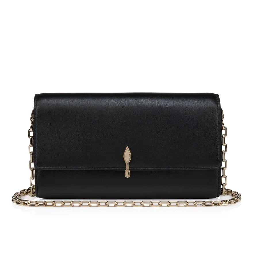 An Iconic Maison Christian Louboutin Model, the Bettina Wallet on a Chain Boasts Sophistication. Adorned on the Front with a Gold Metal Clasp Evoking the Silhouette of the Iconic Sole, This Elegant Model is Made Entirely from Smooth Black Lamb Nappa Leather. The Nappa Leather, with Its Semi Mat Aspect and Slightly Visible Natural Grain, Exudes Quality and Offers a Timeless and Sophisticated Look.