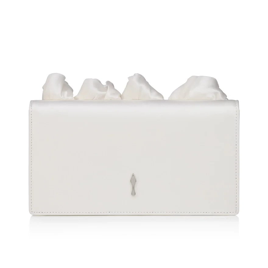 The Sophisticated Bettina Clutch Features Mere Lachaise Hand-Crafted Crepe Satin Flowers on the Front, Each One Attached by Hand to Create a Unique and Striking Bouquet. This Signature Model from Maison Christian Louboutin is Entirely Crafted in White Taffeta and Crepe Satin and is Part of the Wedding Capsule.