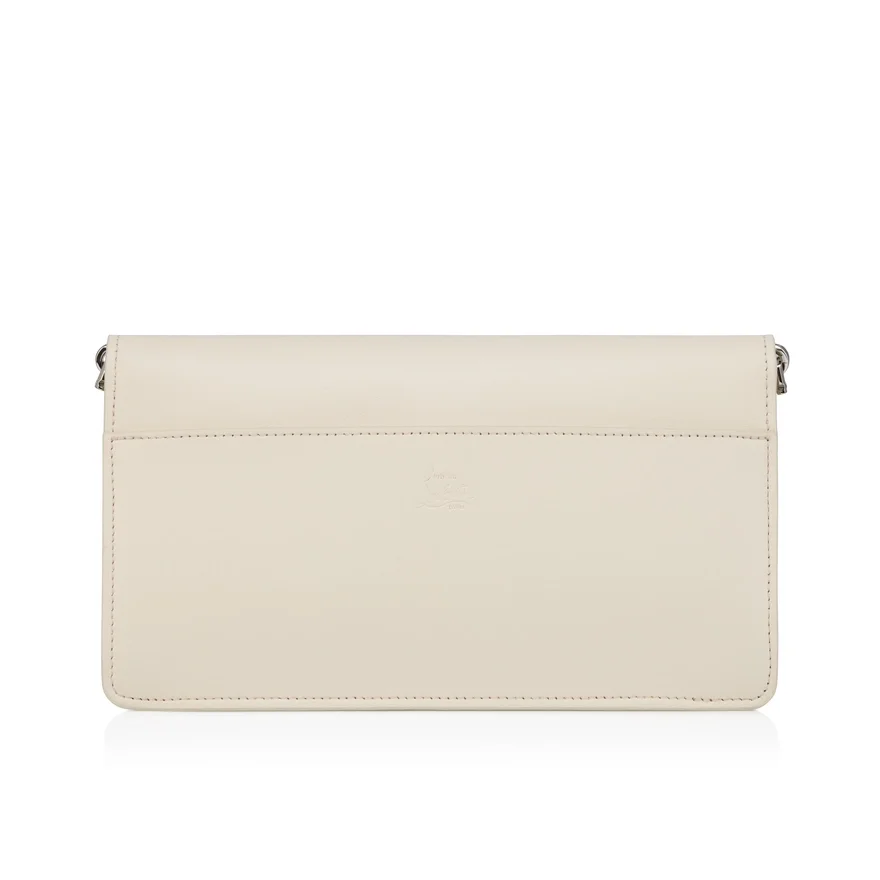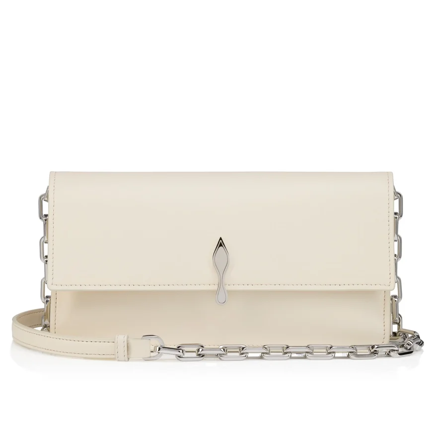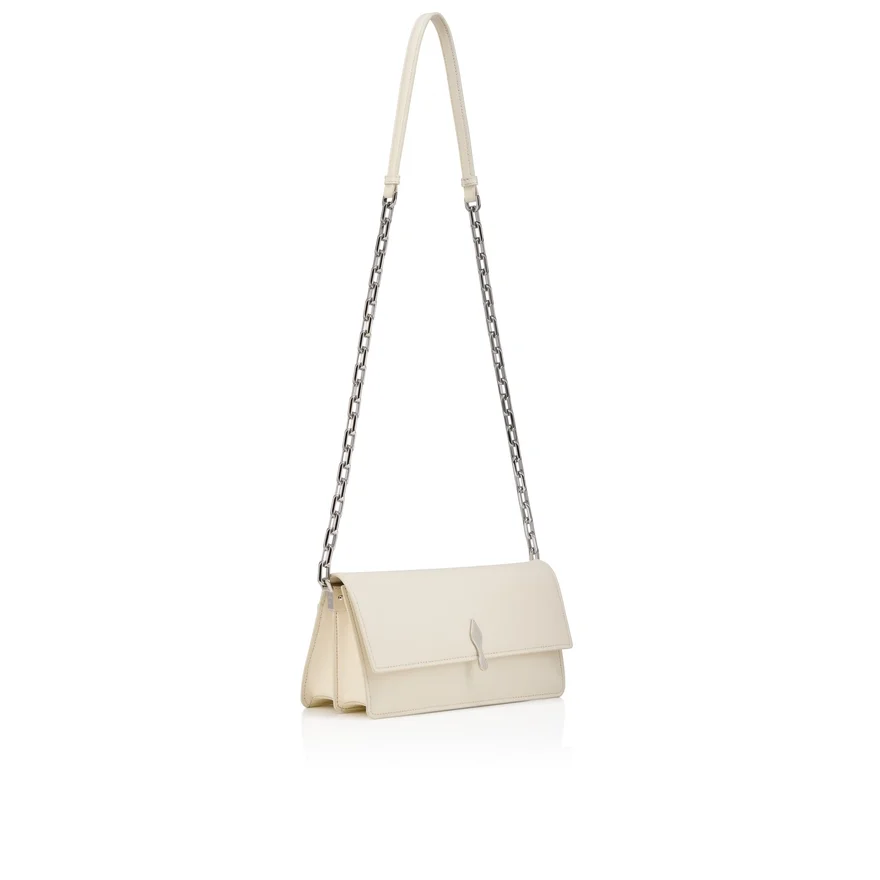 The Maison Christian Louboutin Bettina Crossbody is an Ideal Accessory to Elevate Any Outfit. This Lightweight Model is Easy to Wear and is Perfect for Both Day and Evening. A Silver Clasp, Evoking the Silhouette of the Iconic Sole, Graces the Front of This Sophisticated Bag Crafted in Suzuran White Smooth Lamb Nappa Leather. The Eye-Catching Silver Chain Can Be Used to Wear This Elegant Bag Across the Body or over the Shoulder. The Nappa Leather, with Its Semi Mat Aspect and Slightly Visible Natural Grain, Exudes Quality and Offers a Timeless and Sophisticated Look.