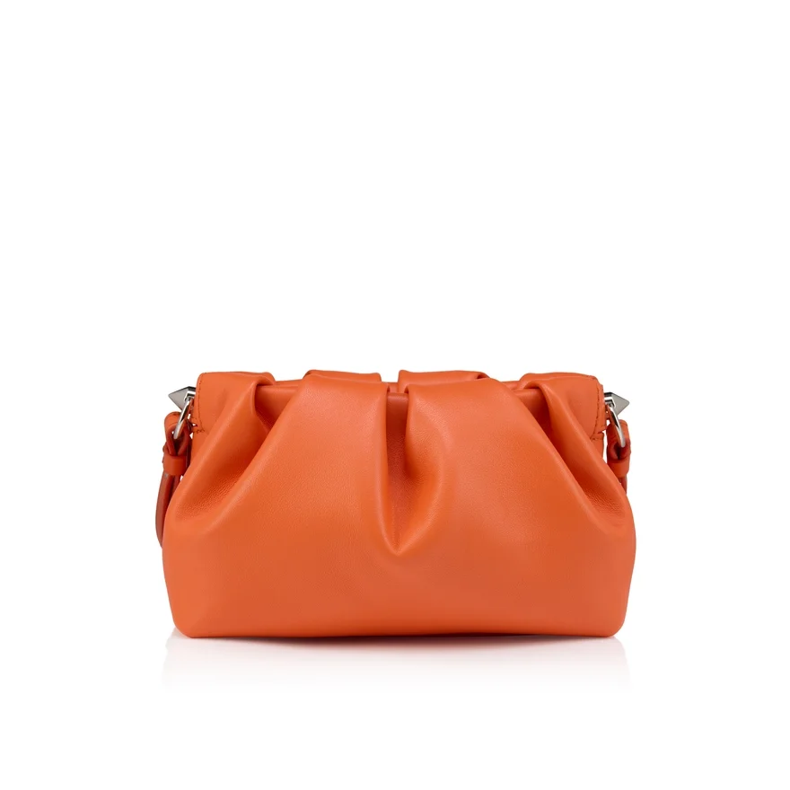 The Eva Crossbody Bag in Size Mini Features a Pillowy Design with Artisan Hand-Pleated Leather for a Smooth Touch and Timeless, Sophisticated Finish. This Lightweight, Compact Handbag Can Be Carried Under the Arm or Across the Body Using the Leather Shoulder Strap. It is Adorned with a Signature Maison Christian Louboutin Sole Charm and Spikes on Both Sides of the Bag. This Model is Crafted from Caruzo Orange Lamb Nappa Leather with a Semi-Mat Appearance and Elegant, Quality Feel.