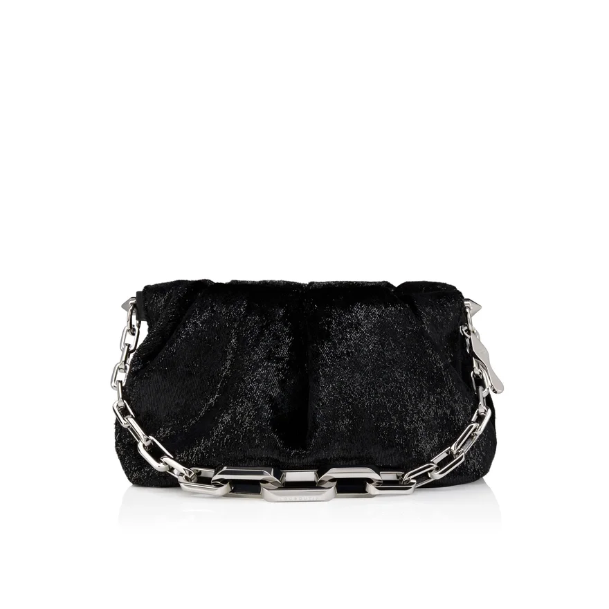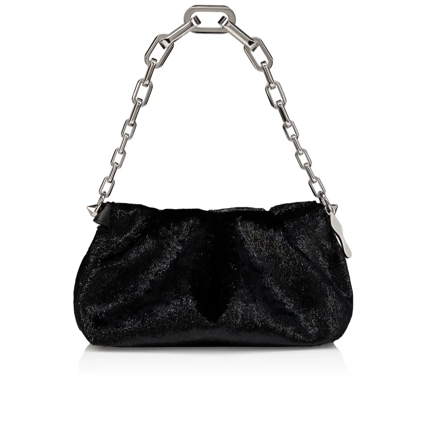 The Sophisticated Eva Shoulder Small is Enhanced with Signature Maison Christian Louboutin Details. Made Entirely from Velvet in Black, It Features a Pleated Design. It is Also Adorned with Spikes and an Embellishment Evocative of the Iconic Sole. This Model is an Online Exclusive.