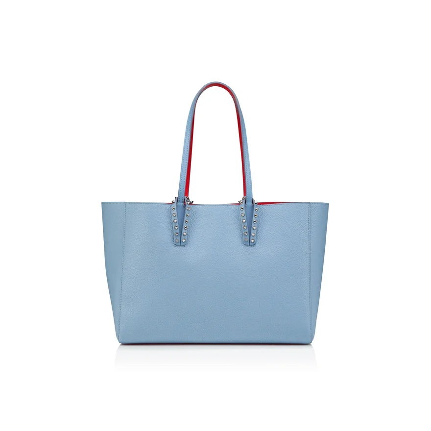 With Its Supple Construction, the Cabata Tote in Size Small Showcases Maison Christian Louboutin’s Savoir Faire. This Model Features the Iconic Characteristics of the Cabata Tote: Signature Silver-Toned Metallic Spikes Around the Handles, an Audacious Sneaker Sole Under the Bag for Increased Protection, and a Loubi Red Lining. It is Made from Ceruleo Blue Grained Calf Leather, and Features a Removable Pouch That Can Be Carried Separately.