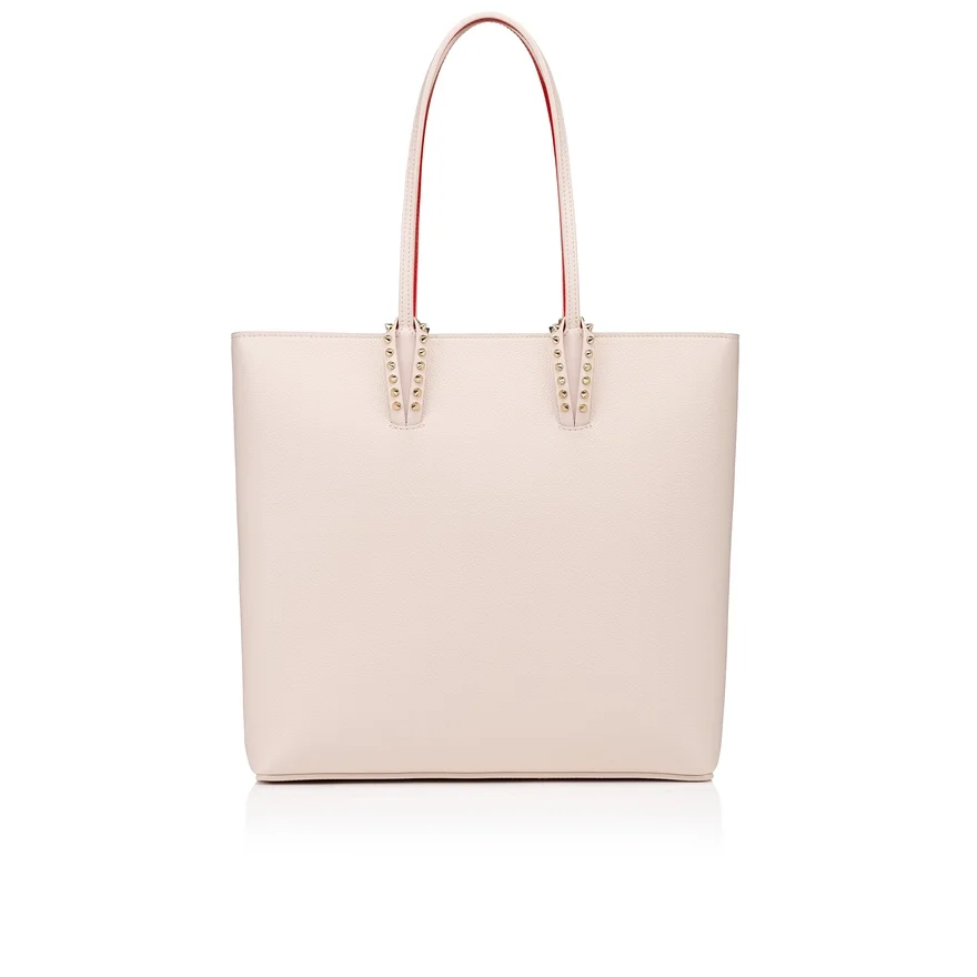 The Cabata Tote Showcases an Array of Maison Christian Louboutin’s Signature Details and Features a Secure Zip Fastening. This Model is Crafted in Textured Leche Beige Calf Leather with Spikes Around the Bottom of the Handles and an Iconic Sneaker Sole.