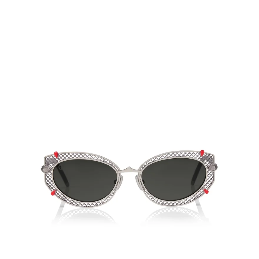 The Dolly Lb0030 Sunglasses from Eyewear Collection 2 Are Inspired by the Iconic Christian Louboutin Dolly Pump and a Touch of Art Deco. The Frames Are a Tribute to Lightness, Embodying a New Level of Femininity and Grace.This Model Features a Shiny Dark Ruthenium Metal Style with an Oval Shape. A Palmette Pattern Embellishes the Frontal Profile Grabbed by Tiny Red Soles Signifier Combined with the High-Performance Zeiss Smoke Lenses That Offer Exceptional Quality, Comfort, and Durability for the Christian Louboutin Collection. This Model is an Online Exclusive.Dimensions:- Lens Width: 54Mm- Bridge: 19Mm- Temple Length: 135Mmthese Frames Are Suitable to Add Prescription Lenses.Made in Italy.