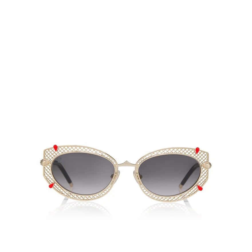 The Dolly Lb0030 Sunglasses from Eyewear Collection 2 Are Inspired by the Iconic Christian Louboutin Dolly Pump and a Touch of Art Deco. The Frames Are a Tribute to Lightness, Embodying a New Level of Femininity and Grace.This Model Features a Pale Gold Metal Style with an Oval Shape. A Palmette Pattern Embellishes the Frontal Profile Grabbed by Tiny Red Soles Signifier Combined with the High-Performance Zeiss Smoke Gradient Lenses That Offer Exceptional Quality, Comfort, and Durability for the Christian Louboutin Collection.Dimensions:- Lens Width: 54Mm- Bridge: 19Mm- Temple Length: 135Mmthese Frames Are Suitable to Add Prescription Lenses.Made in Italy.