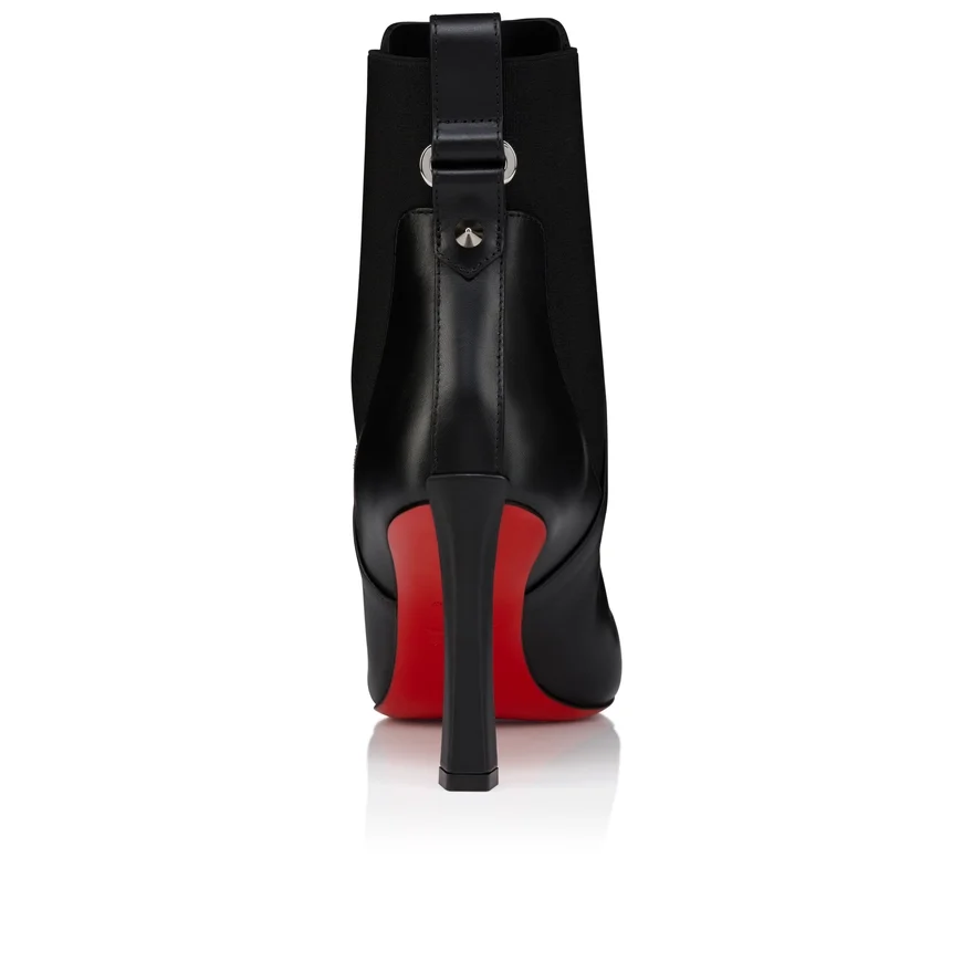 The Pointed Toe of the Condodo Low Boot is Reminiscent of a Bird’s Beak. This Sophisticated Model is Distinguished by Its 85 Mm Bevelled Heel. It is Made Entirely from Black Calf Leather and Features an Elasticated Band on Its Sides and Back. The Loop at the Back is Trimmed with a Metallic Spike, a Signature Detail of Maison Christan Louboutin.