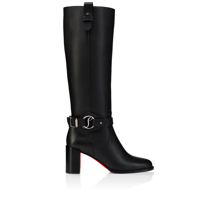 Maison Christian Louboutin’s Dianouchette Botta Tubular Boot Features a Round Toe and is Crafted in Black Calf Leather. This Model is Easy to Put on Thanks to the Two Leather Straps Around the Ankle, Adorned with an Iconic Silver Cl Mooncrest Logo, Pin and Buckle. Set on a 70 Mm Block Heel, This Long Boot Rises Elegantly up the Leg and is Finished at the Top with a Leather Side Tab Featuring a Silver Pin.