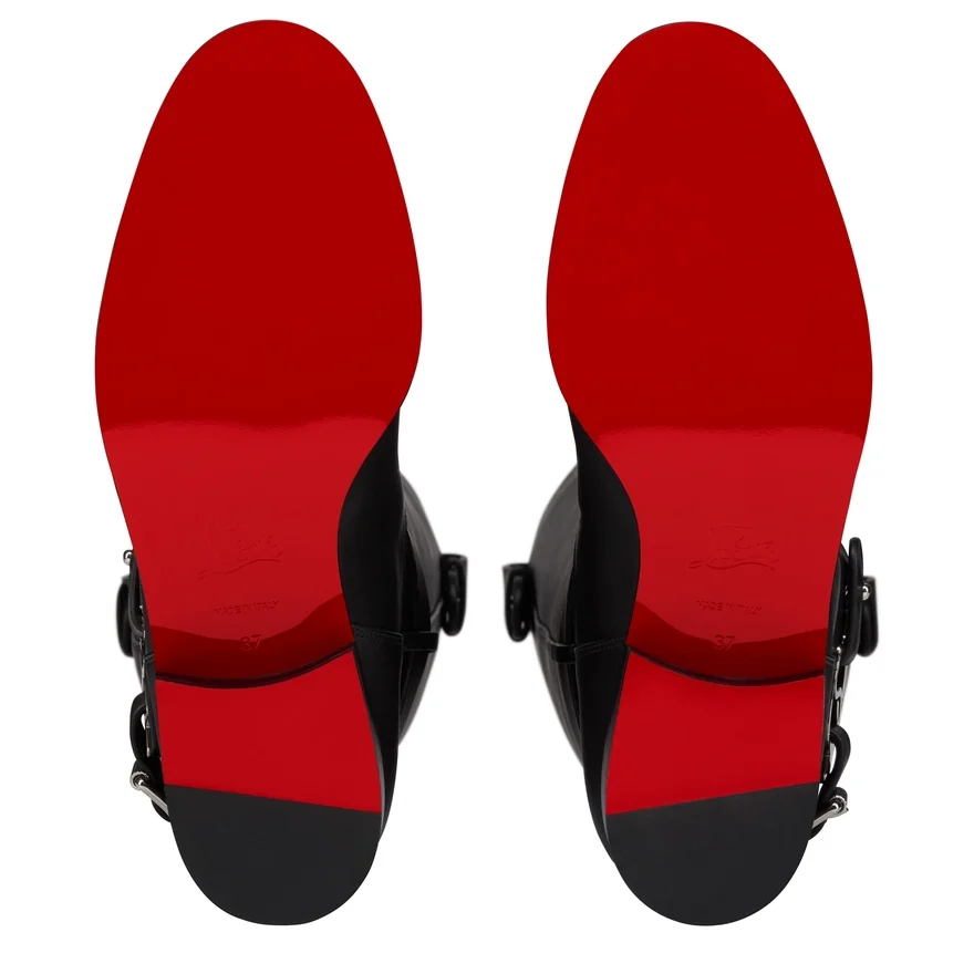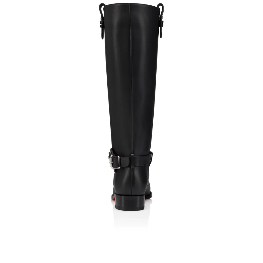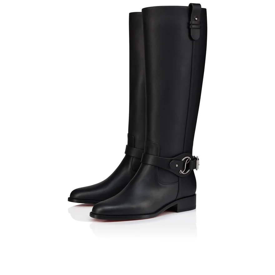 Maison Christian Louboutin’s Dianouchette Botta Tubular Boot Features a Round Toe and is Crafted in Black Calf Leather. This Model is Easy to Put on Thanks to the Two Leather Straps Around the Ankle, Adorned with an Iconic Silver Cl Mooncrest Logo, Pin and Buckle. This Long Boot Rises Elegantly up the Leg and is Finished at the Top with a Leather Side Tab Featuring a Silver Pin.