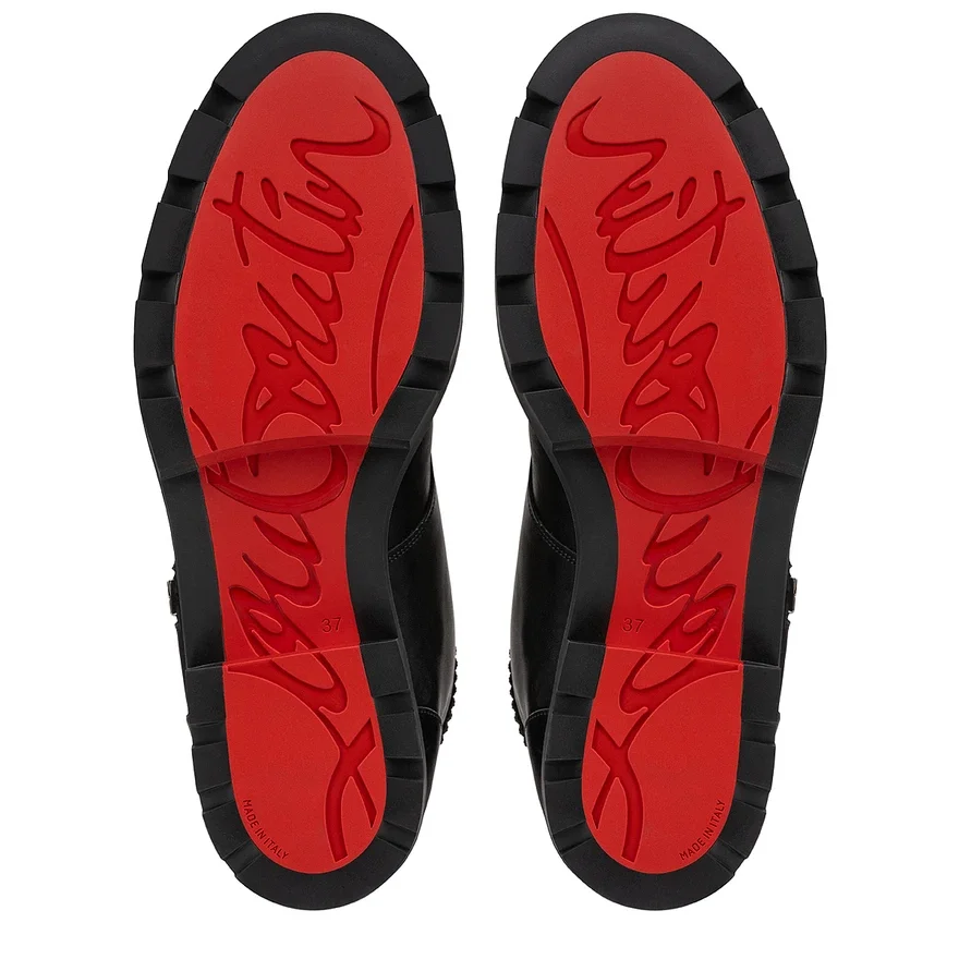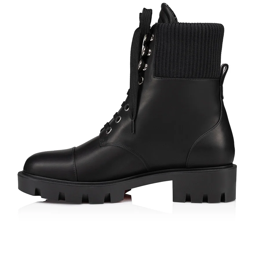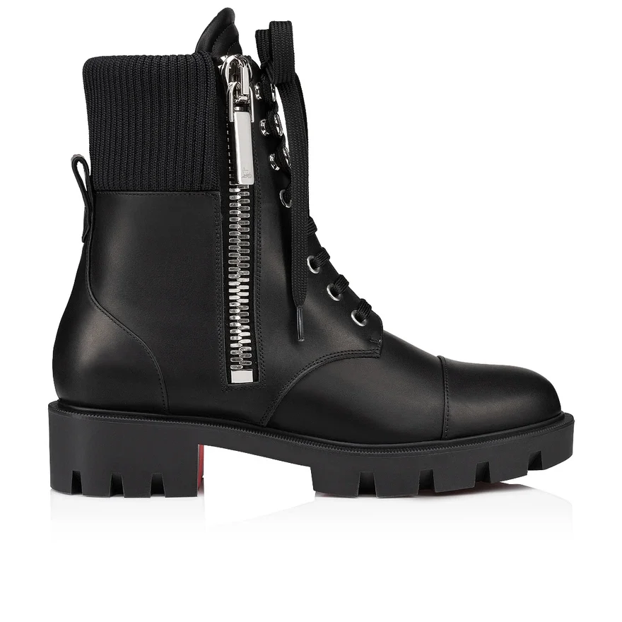 Taking Its Inspiration from Biker Boots, the En Hiver Lug Ankle Boot Showcases a Modern Look. This Maison Christian Louboutin Model Sits on a 4 Cm Lug Sole and is Crafted in Black Patent Calf Leather. The Lacing on the Front is Complemented by an Over-Sized Silver Side Zip.
