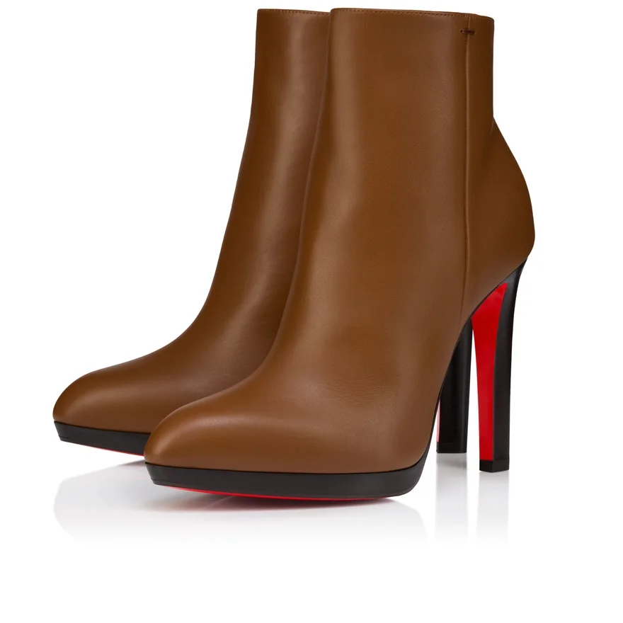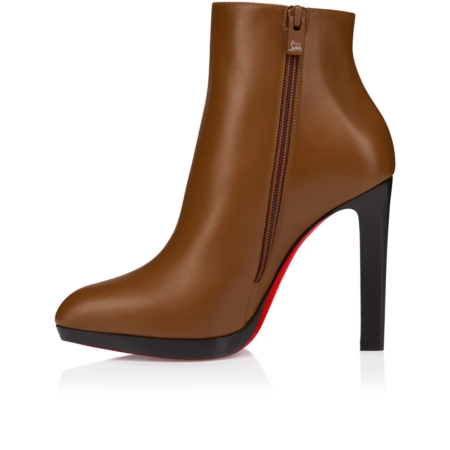The Fannylove Booty Blends Simplicity with Impact. This Elegant Ankle Boot Features a Discreet Platform for Added Comfort, an Almond-Shaped Toe and a 120 Mm Sculptural Heel That Appears Slim from the Back Yet Bold and Structured from the Side, Revealing a Glimpse of Loubi Red. It is Crafted in All-Over Cuoio Brown Calf Leather with a Padded Insole.
