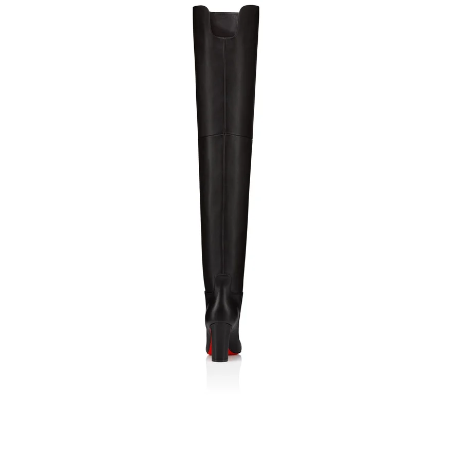 The Sophisticated Loo Thigh Boot is Made Entirely from Cafa Brown Calf Leather. This Urban Maison Christian Louboutin Boot is Set on an 85 Mm Straight Heel. It Features an Almond-Shaped Toe and Has a Sleek, Tubular Silhouette That Wraps the Leg up to Thigh.