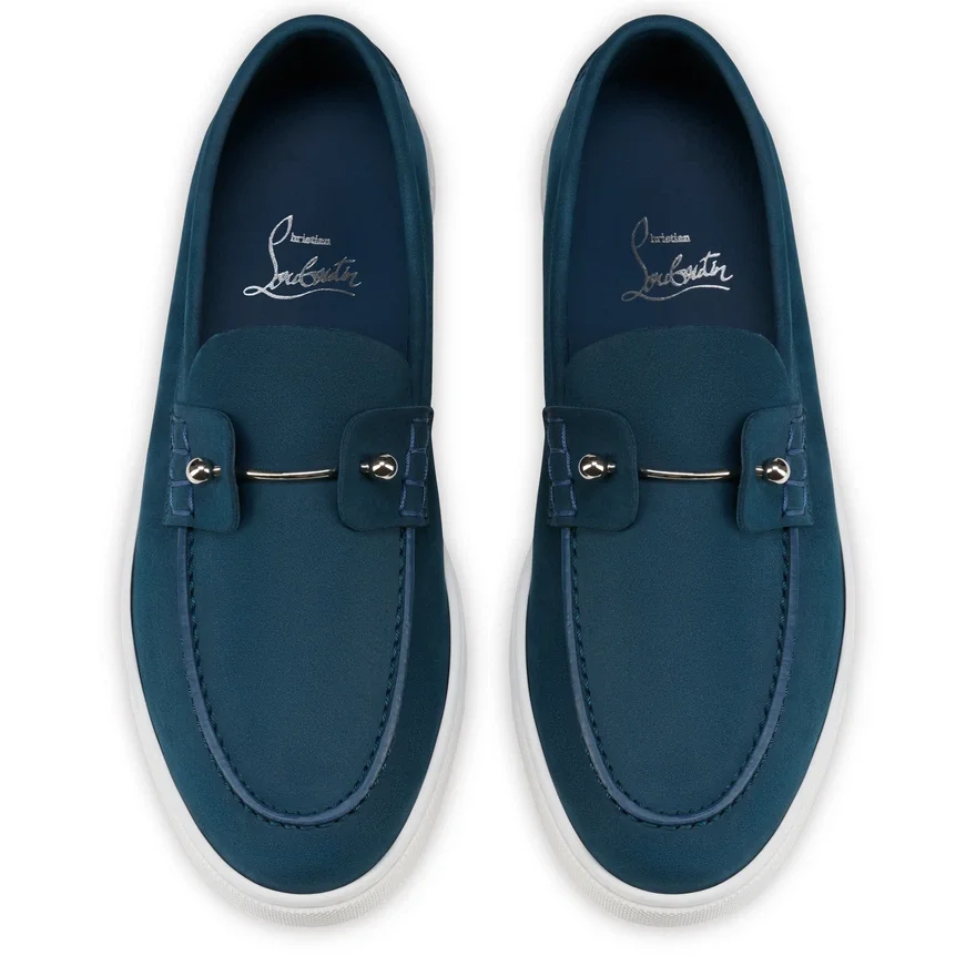The Chambeliboat Women’s Boat Shoe Has a Sleek Silhouette. This Elegant Loafer Has a Supple Construction and is Entirely Crafted from Last Night Blue Reversed Calf Leather. The Tongue Features a Metal Collar Pin, Showcasing Maison Christian Louboutin’s Creative Flair. This Light, Flexible and Urban Model is Set on a Rubber Sole.