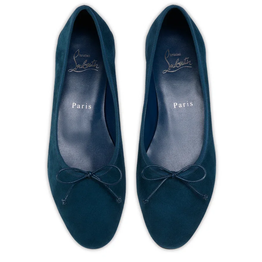 The Sweetie Jane Ballerina Pump Features a Rounded Toe and is Entirely Crafted in Last Night Blue Veau Velours. This Maison Christian Louboutin Model Features a Small Bow on the Top and a New ‘Everlasting Red’ Sole Thanks to an Innovative Coating Technique That Ensures Resistance and Lasting Vibrancy for Our Signature Louboutin Red.