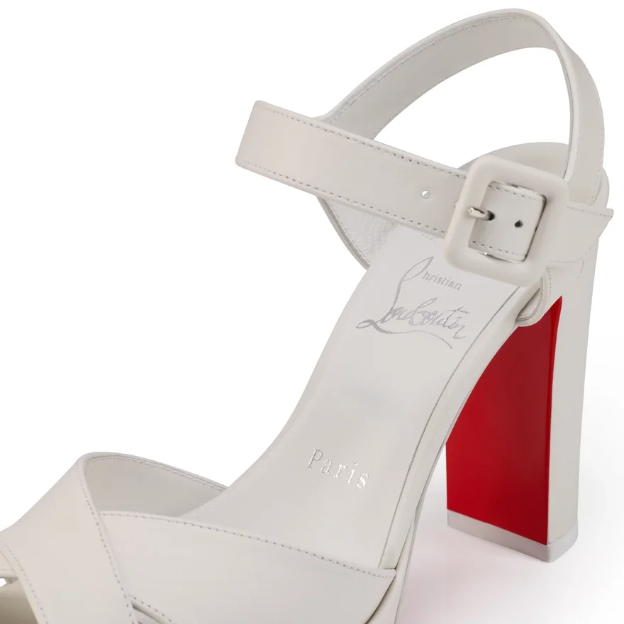 With Its 100 Mm Block Heel and 15 Mm Platform, Maison Christian Louboutin’s Cora Sandal is Effortlessly Elegant for Day-To-Evening Wear. It Features Wide Cross-Over Straps Revealing a Subtle Glimpse of the Foot Beneath and a Similarly Wide Ankle Strap That Fastens with a Tonal Buckle. This Model is Crafted in All-Over Bianco White Lamb Nappa Leather.